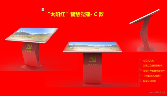 太阳红智慧党建系列是自助服务终端的创新应用实现党建工作向互联网服务终端的延 伸,以互联网+党建为理念集成党建核心服务以触控大屏为载体展现出来通过信息化手段实现干部工作实绩在线纪审评查等功能对机关科室和干部个人工作实绩精神状态进行全程激励、客观评估、量化考核用科学化手段构建全面系统的党建工作考核体系宣传时代精神弘扬社会正能量传播党的文化理念促进建立和谐的社会关系,