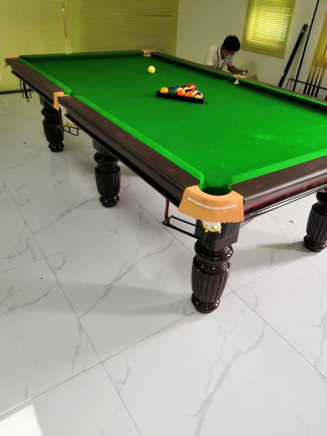 全新,烤漆面板,国产优质木邦,大理石,六条腿,附带上海澳毛台呢一张,球一副,球杆二根,架杆一根,三角架一个(价格4200元)