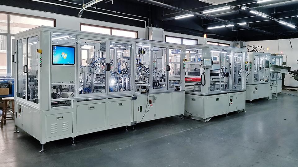 电机马达胶盖组装生产线主要有6个单机组成,通过6台机的配合完成产品的全自动组装,涂胶,检测等工艺过程。电容,电感与插头碰焊单机完成电容与插头的碰焊,电感与插头的碰焊。需要两台机同时进行。胶盖插头组装单机 完成胶盖和插头组件的组装及打倒扣,电感位涂胶。焗炉烘干冷却单机进行胶水烘干及产品冷却。碳精剪线碰焊单机完成碳精的剪线,碳精与连接片的碰焊。总装收料单机完成碳精组件与胶盖的组装,扭簧的组装及成品收料。组装后成品对液压挺杆所有零件不能有任何夹伤、损伤,以及漏装、多装、倒装零件等现象。
