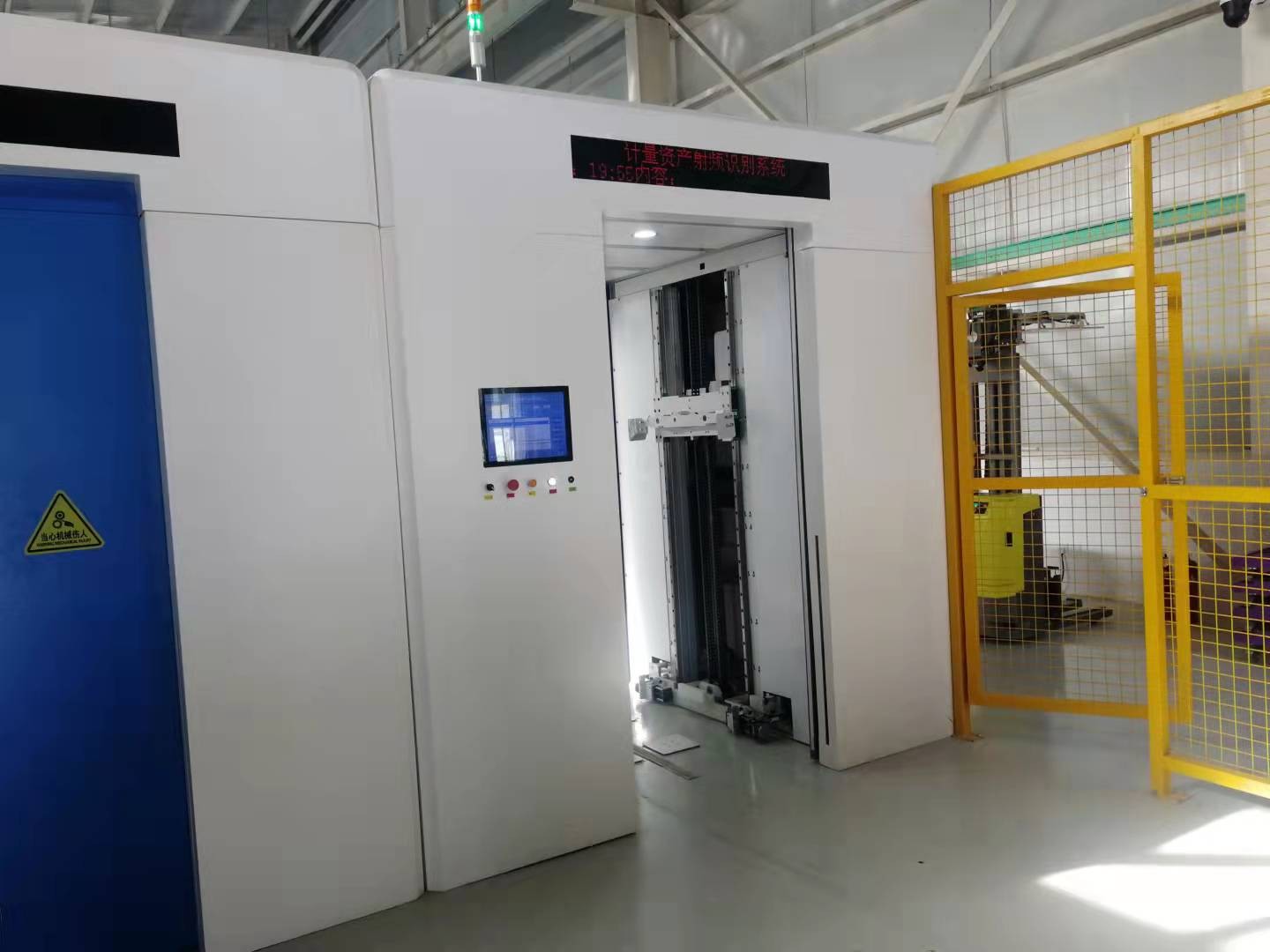 (3)功能特点 实现将物料周转车上的15个以内周转箱拆成两垛,所拆数量根据传递参数确定; 拆完后通知AGV取走下面留下的周转箱垛,同时可以再搬运一个空周转车后通知上面拆的周转箱放入小车; 内部通道尺寸:长1.5米,宽1.0米,高度2.2米(可定制); 设备与AGV小车等配合使用,定位后完成拆码垛作业; 人工推进整垛周转箱垛后,自动定位无动力小车; 采用15寸触摸屏进行人机交互,能够进行箱类型、层数等设置; 射频识别有可靠的屏蔽罩,可以杜绝扫描到设备外面无需识别的电子标签,保证采集到的数据准确性,专业屏蔽保护和防串扫设计; 具有完善的数据核验、声光提示、语音引导功能,使用方便,运行可靠; 配有超高频识别器和6个超高频天线,能够有效识别周转箱内电能表条形码信息; 可与其他系统进行对接,提供二次接口; 能正确稳定识别并采集RFID电子标签所有信息,一次批量正确读取率不小于99.99%,识别时间不超过30秒; 识别类型:电能表、终端设备、周转箱、栈板车等; 射频识别装置采用自动门进行自动开关屏蔽,避免外面设备被识别,自动门开关时间小于5s;