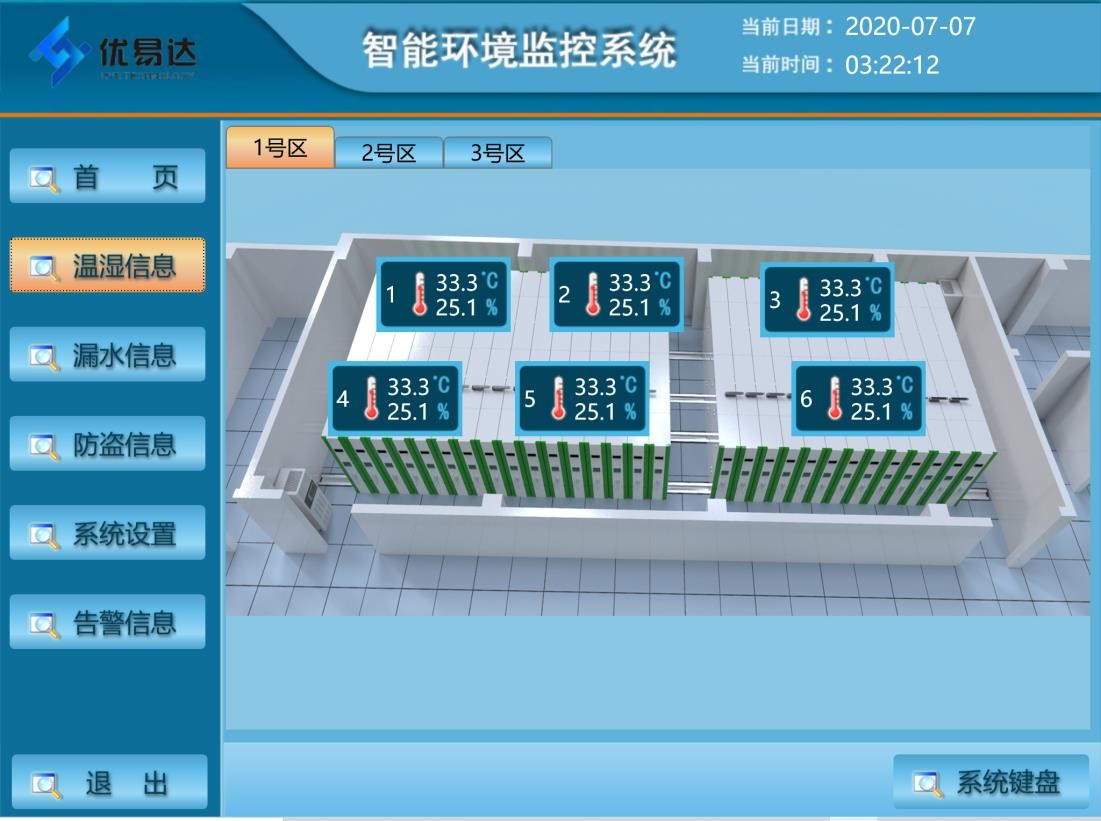 3)功能特点 通过串口连接室内温湿度感应器、漏水检测感应器、烟雾感应器、视频监控、门禁和空调等设备进行数据采集和功能控制; 显示屏实时显示各个传感器数据信息,以及通过触摸屏控制门禁、空调等设备; 能够对操作人员进行拍照记录和语音提示操作结果等; 能够实现指纹或密码打开门禁等控制; 数据信息能够通过网络上传到其它平台进行监控和管理; 计算机远程实时监控库房状态,有异常进行报警管理; 终端对采集到的数据能够实时保存,能够将保存数据通过查询和统计显示出来;