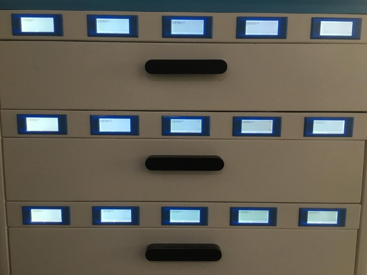 数码管为5位储位编码和2位数量编码分别显示,通过上位机发送的指令自动变更。5位储位编码主要是设置储位的具体位置,方便存取、节约时间、提率。2位数量编码可以显示的数量范围:00~99,根据存取的结果进行智能化显示,便捷随时获取库存数量
