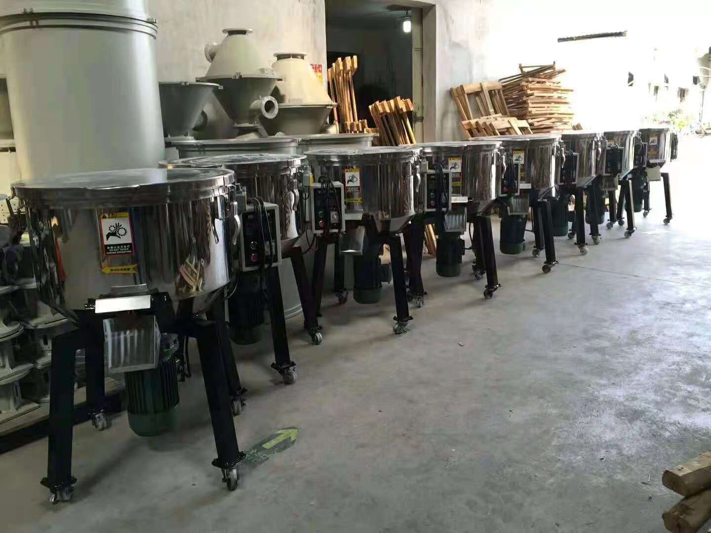 由一个水平的容器和旋转的立式搅拌叶片组成,成型料搅拌时,叶片向右转,由于原料各颗粒间运动方向错位移动,互相接触的机会增多;混料采用的是减速电机,机器转速低,不会产生太多的热量,搅拌效率高,混料较为均匀。