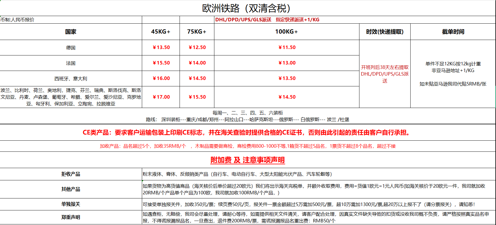 时效稳定可追溯:开班列后 38 天左右快递提取,DHL/DPD/UPS/GLS 专业派送,全程物流轨迹实时可查。