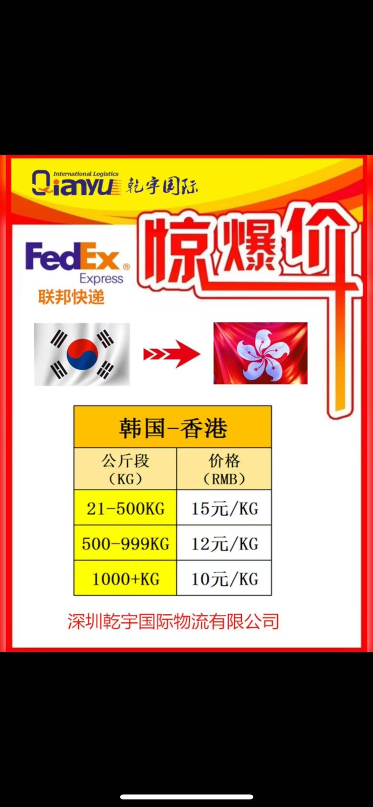 韩国到香港物流专线:护肤品安心直达,FedEx门到门运输