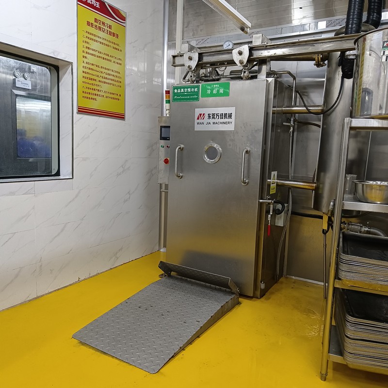 2)降温均匀性:蒸汽式更优,避免 “局部温差”·真空泵式:冷却腔体内的空气排除依赖真空泵抽力,若腔体体积大或食品堆叠密集,易出现 “局部真空度差异”,导致食品表面与内部、边缘与中心降温不均,温差可能达 5-8℃;